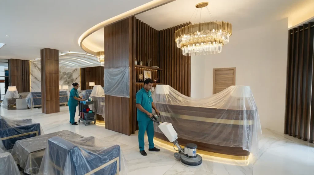 This isn’t just any ‘deep cleaning’ job; it’s a specialised task. Our parent company, which has been in the contracting business for the past 35 years, assists us. This heritage gives us a good understanding of materials, surfaces, finishes, and how to handle spaces.